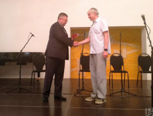 Валерий Емец вручил награду на многолетний добросовестный Иру управляющему региональным отделением ПФР Геннадию Пашину.
