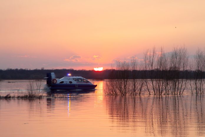 Сотрудники МЧС осматривают акваторию разлившейся Оки у села Шумашь.