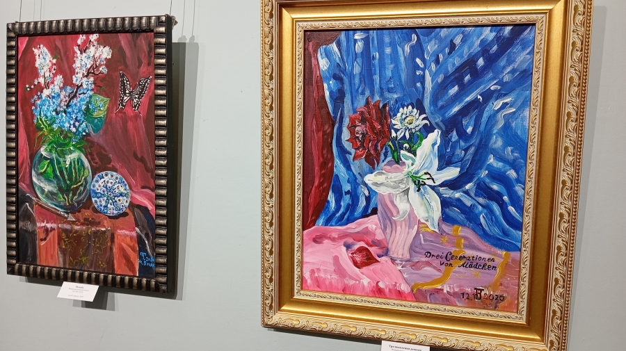 И еще одна работа на этой выставке – особая: «Три поколения девочек». Она посвящена маме Раисе и бабушке Ольге. Символ души мамы – белая цветущая лилия. В зрелой бордовой розе – образ главы семьи, бабушки. В образе хризантемы запечатлен образ автора. По признанию художника этот натюрморт – «лирическая песня» ее семьи.