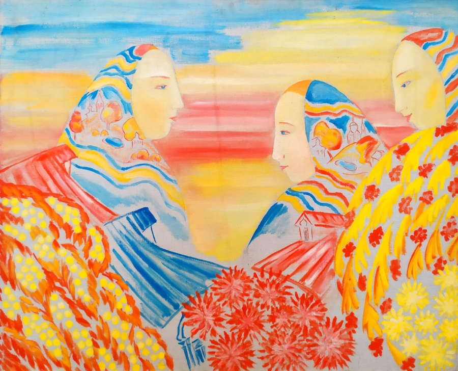 Вся творческая жизнь Людмилы Павловны была связана с рязанской землей. Уроженка Харькова, она окончила Рязанское художественное училище, а затем работала художником-реставратором в историко-архитектурном музее-заповеднике, трудилась в художественно-производственных мастерских, преподавала студентам училища. И продолжала искать свой стиль и авторский язык, черпая силы в том числе в народном творчестве. Гармоничное, полное символов и тайн, яркое народное искусство отражено во многих работах Людмилы Дунаевой. Причем как в виде антуража – в натюрмортах и бытовых зарисовках, так и напрямую. Героини сказаний и сновидений, удивительные узоры и знаки сами порождают миры, где нет места страху. Горю и боли, может, есть – как необходимым и непреодолимым этапам жизни. Но не удушающей тоске и безнадеге. Об этом говорит и сам колорит картин: почти нигде нет черного цвета…