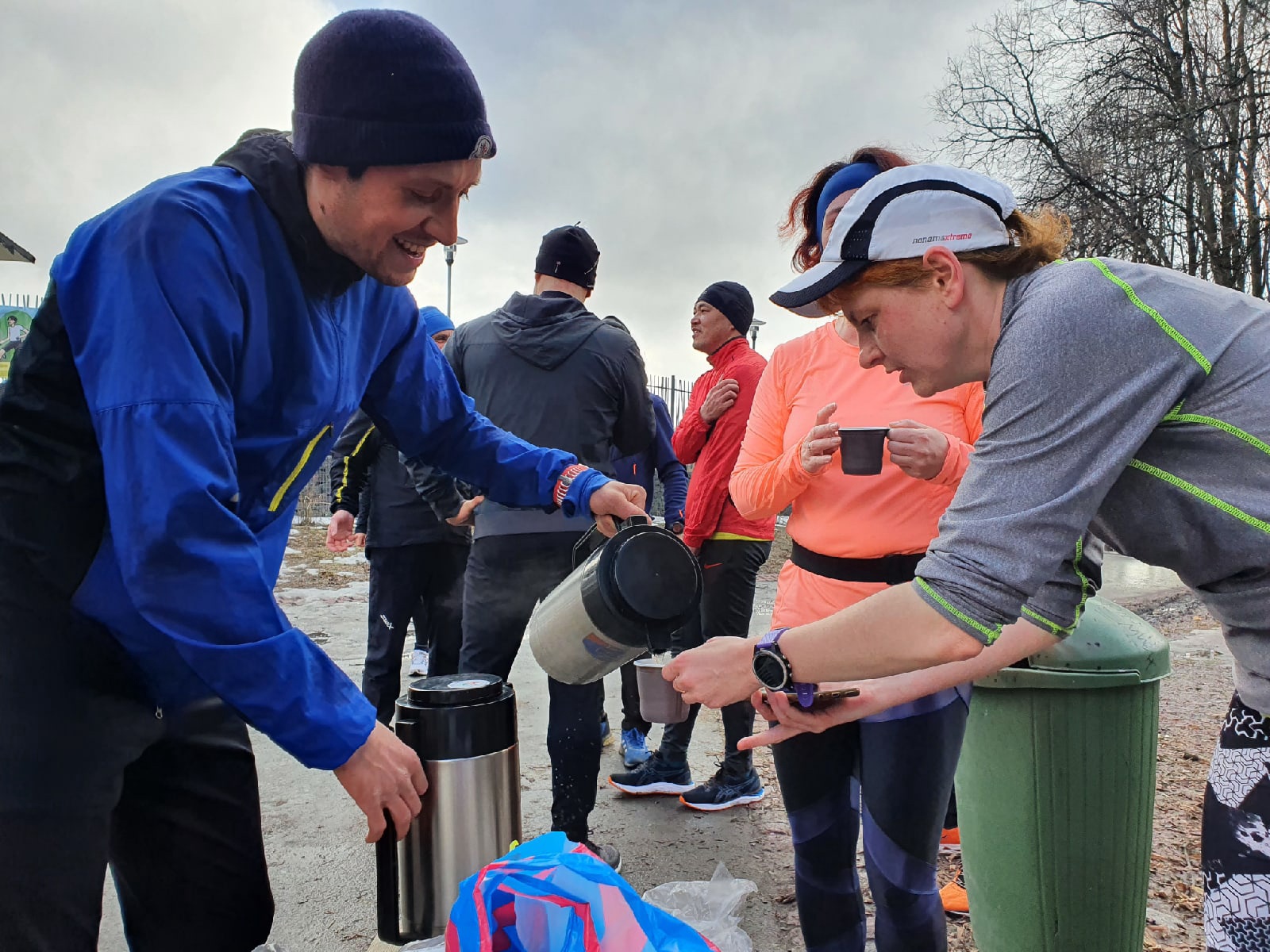 Постоянные участники Паркового забега Валентин и Анна Петровские привезли в ЦПКиО торт. После финиша угостили им друзей, с кем каждую субботу пробегают свои 5 километров здоровья.