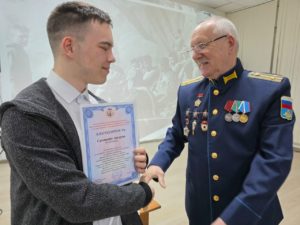 Николай Иванович рассказал о тех бойцах, которые в наши дни защищают интересы Отечества в Донбассе, и там тоже многонациональной народ. Организатор встречи, школьный библиотекарь и волонтер Юлия Яровова показала Николаю Войткову сети. Их ребята плетут в свободное от учебы время. Самым активным волонтёрам Николай Войтков вручил благодарственные письма.