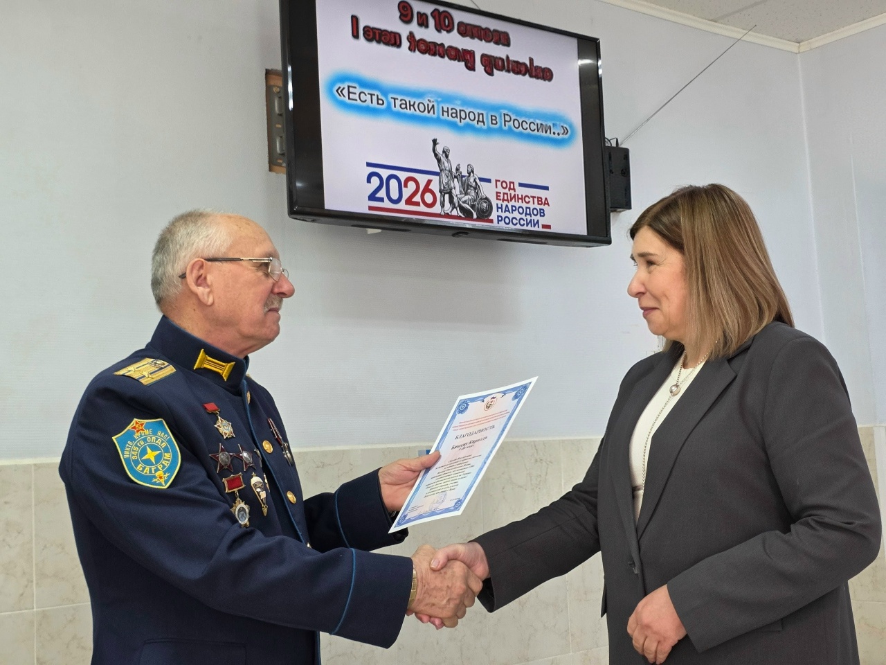 Николай Иванович рассказал о тех бойцах, которые в наши дни защищают интересы Отечества в Донбассе, и там тоже многонациональной народ. Организатор встречи, школьный библиотекарь и волонтер Юлия Яровова показала Николаю Войткову сети. Их ребята плетут в свободное от учебы время. Самым активным волонтёрам Николай Войтков вручил благодарственные письма.