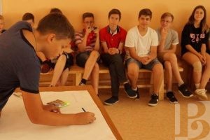 Самая  младшая группа отдыхающих оказалась под строгим присмотром руководителя городского антинаркотического волонтерского отряда «Ради жизни» Дмитрием Опришко. Перед ребятами стояла непростая задача – нарисовать здоровый город, в котором все жители ведут здоровый образ жизни, занимаются спортом и делают зарядку по утрам.  Дети с удовольствием орудовали разноцветными мелками и рисовали яркие цветы, деревья, озера, школы и, конечно же, счастливых и здоровых жителей города.