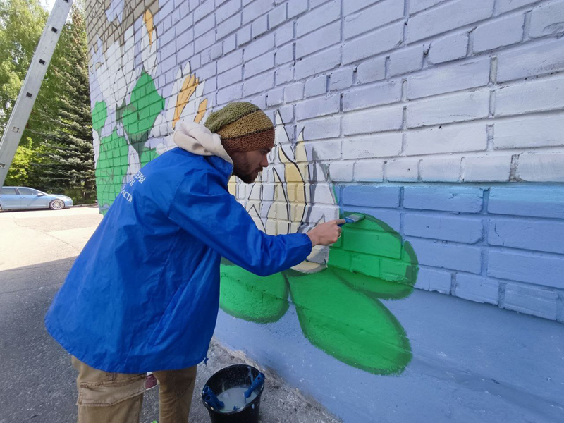 Волонтеры культуры Рязанской области и библиотека имени Горького продолжают расписывать стену детского инфекционного отделения городской клинической больницы N°11 в рамках проекта «Рисунки на здоровье».