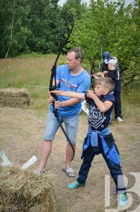 На втором фермерском фестивале настоящее раздолье для малышей и подростков. Спортивная площадка собрала лучников, городошников, волейболистов и футболистов. Посидеть за рулем легендарного комбайна КЛААС – очередь. Дети позируют за «роялем в кустах» и на высоких стогах сена, учатся у скопинских мастеров премудростям гончарного искусства, участвуют в различных конкурсах.