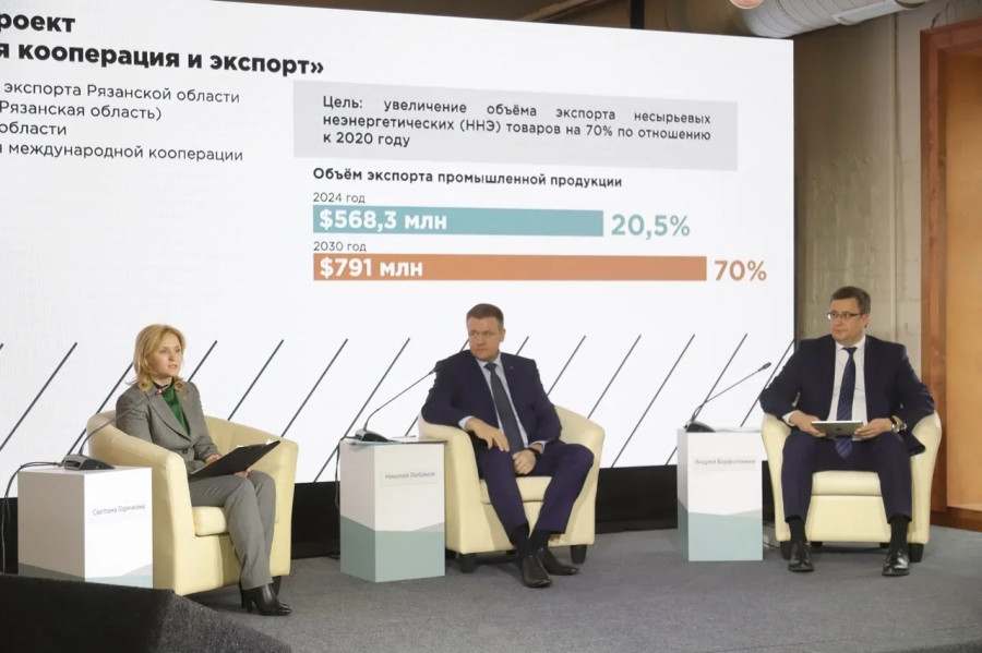 Заместитель председателя регионального правительства Светлана Горячкина рассказала, что ключевая цель, которая стоит перед рязанскими экспортерами, – это увеличение объема экспорта несырьевых неэнергетических товаров на 20% к 2024 году, а к 2030 году – на 70% (по отношению к 2020 году).