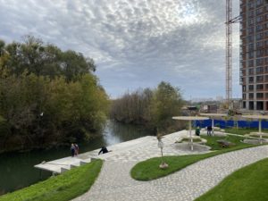 Улица Земнухова пройдена. В каком-то смысле она уникальна – разделена рекой, а мост находится далеко в стороне. Она начинается неожиданно и так же внезапно обрывается, завершаясь тупиком в одной ее части, и упирается в овраг и речку в другой. Она меняет представления о городе, который выглядит здесь совсем не таким, как в центре, – более столичным, мегаполисным, с огромными пространствами дворов, автостоянок и еще не освоенных пустырей. Здесь явно напрашиваются новые поликлиники и детские сады, потому что десятки тысяч жилых квадратных метров не будут пустовать долго. Скоро в Мервине обещают построить передовую флагманскую школу, и в красочных буклетах застройщиков она уже обозначена. Придумана и концепция набережной там, где пока берега поросли сорными деревьями.