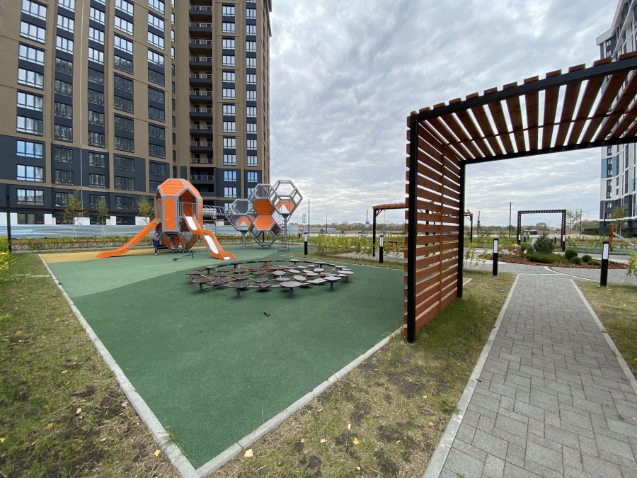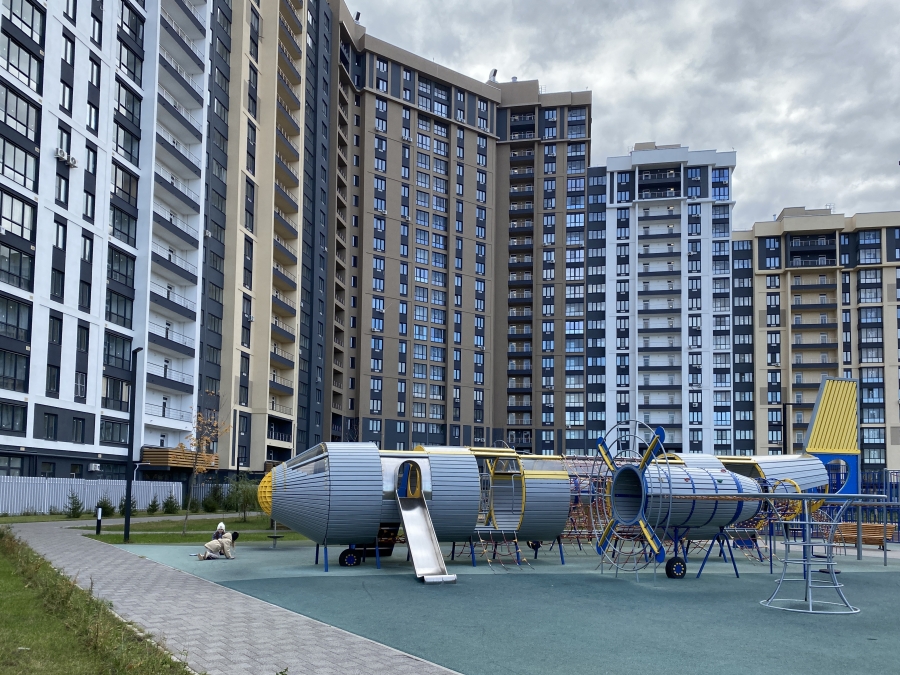 Между домами – прекрасная детская площадка, производящая впечатление столичного городского хайтека. Здесь есть тренажёры, скамейки, качалки, горки, свежепосаженные кусты и что-то типа игровой мельницы, причем действующей. Нужно бросать камешки, колесо вращается, и есть еще какие-то механизмы. Но нет вокруг детей. Дома, видимо, только заселяются. Женщина на скамейке отдыхает, разговаривает по мобильному. Судя по разговору, в телефоне робот интересуется ее «общественным мнением», она это «общественное мнение» терпеливо озвучивает. Женщина занята, а больше мне некому задать вопрос о качестве жизни на улице Земнухова. Однако вид игровой площадки, обещание многоуровневой парковки и красота многоэтажек позволяют предположить, что качество жизни здесь в целом неплохое. Контейнерные площадки для мусора представляют собой новое слово городской урбанистики. Они утоплены в земле и закрыты. Ветер мусору не страшен, а сам он не виден жителям, даже если смотреть с 25-го этажа. Пустырь обнесен забором с крупной надписью «Детский сад» и нарисованными фигурами детей, прыгающими через скакалку. Тут явно что-то построят. Справа тянется глухая стена ТЦ «Премьер», создающая, как ни странно, уют и отгораживающая от шумного Московского шоссе. Одиноко. Дома построены, а жителей вокруг не видно, хотя сегодня суббота.
