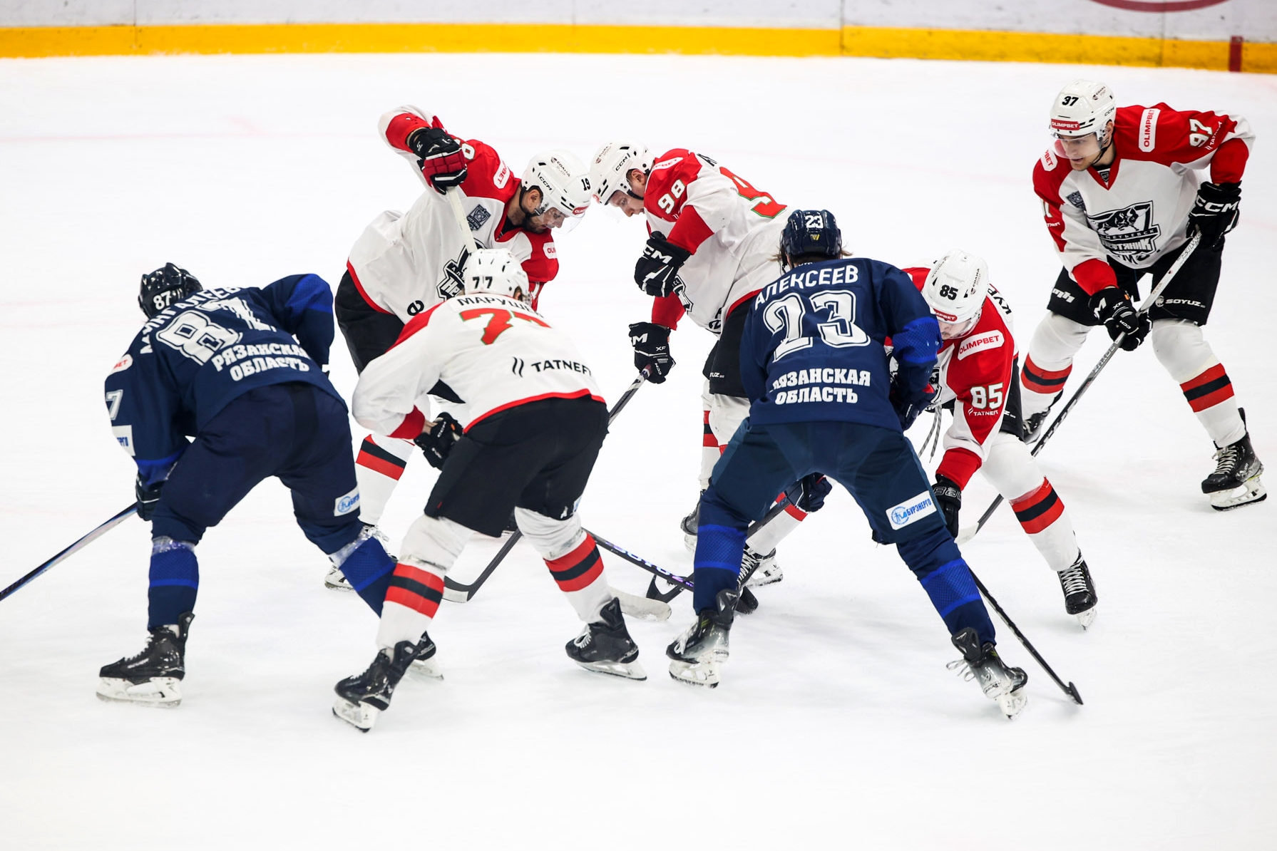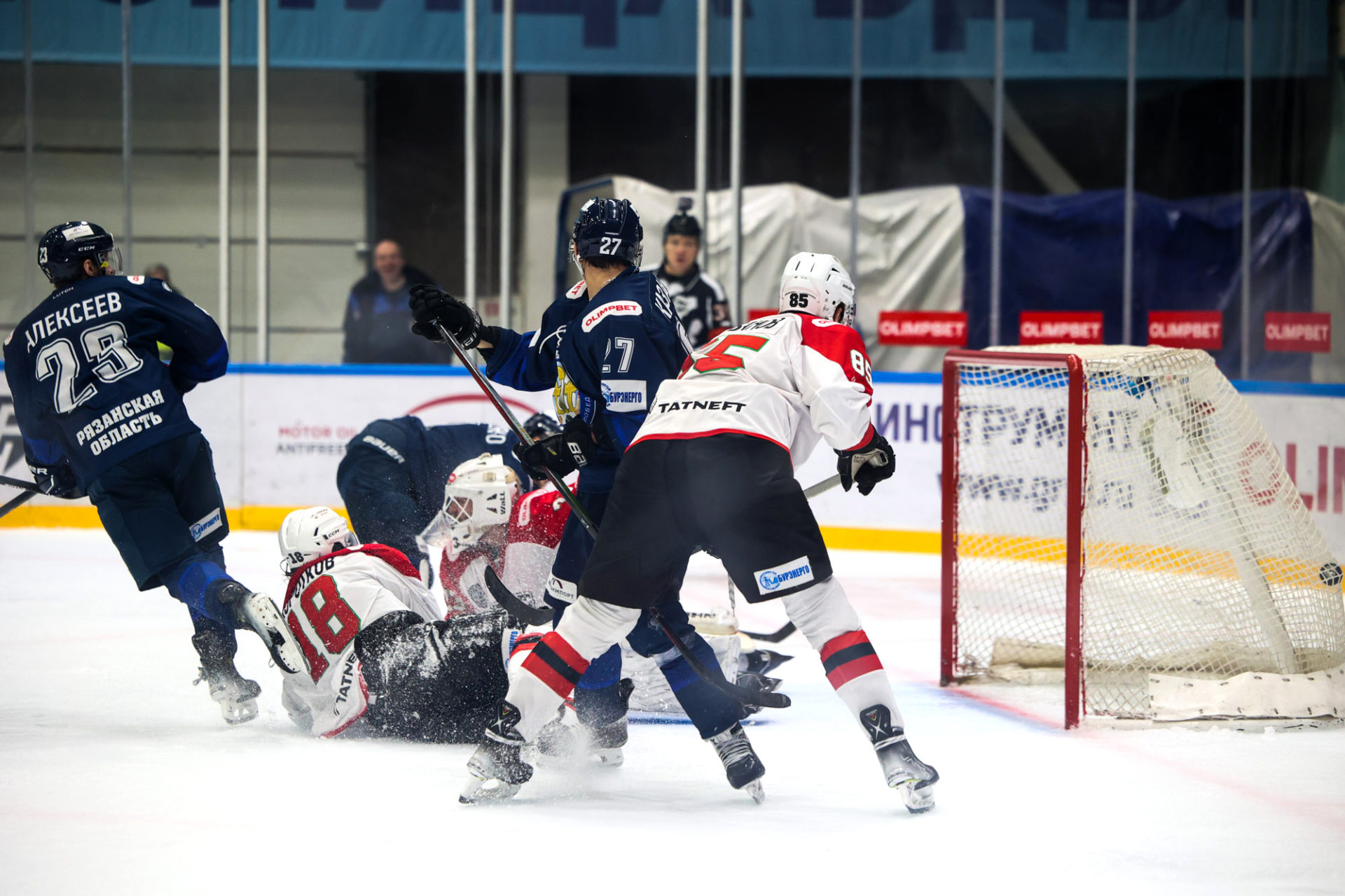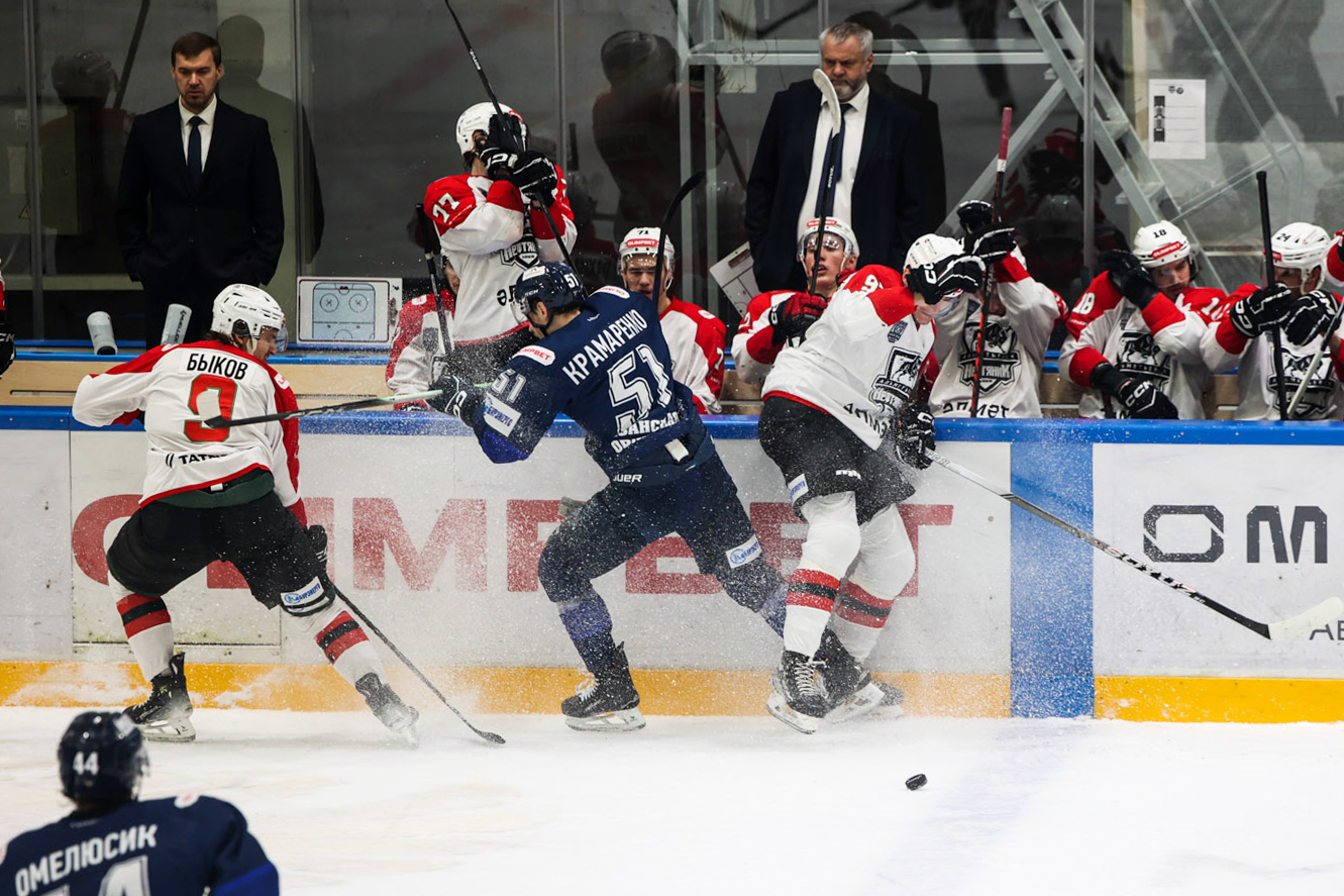 В первом периоде команды обменялись голами – 1:1. Рязанец Илья Шипов навязал борьбу в чужой зоне, отобрал шайбу и забросил ее в ближний угол ворот «Нефтяника». Явного преимущества никому добиться не удалось. Примерно одинаковая ситуация была по броскам, выигранному вбрасыванию шайбы, и лишь по штрафному времени хозяева площадки немного опережали гостей.