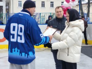 После открытия хоккейной площадки на лёд вышли команды – участницы VIII городского турнира по хоккею в валенках. Принцип участия самый демократичный – наличие клюшки и валенок. Формально сильнейшие получили награды, но, как сказал Кирилл Олегович Сосунов, победила дружба.