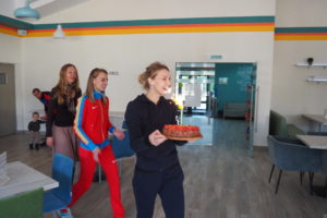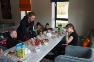 После импровизированной тренировки «Экопарке» ребят ждало дружеское чаепитие и подарки – спортивная экипировка. А мастера спорта по легкой атлетике Инна Иванова, Мария и Александр Именины, инициировавшие экскурсию в «Экопарк Поляны», подготовили для детей сладкие подарки.