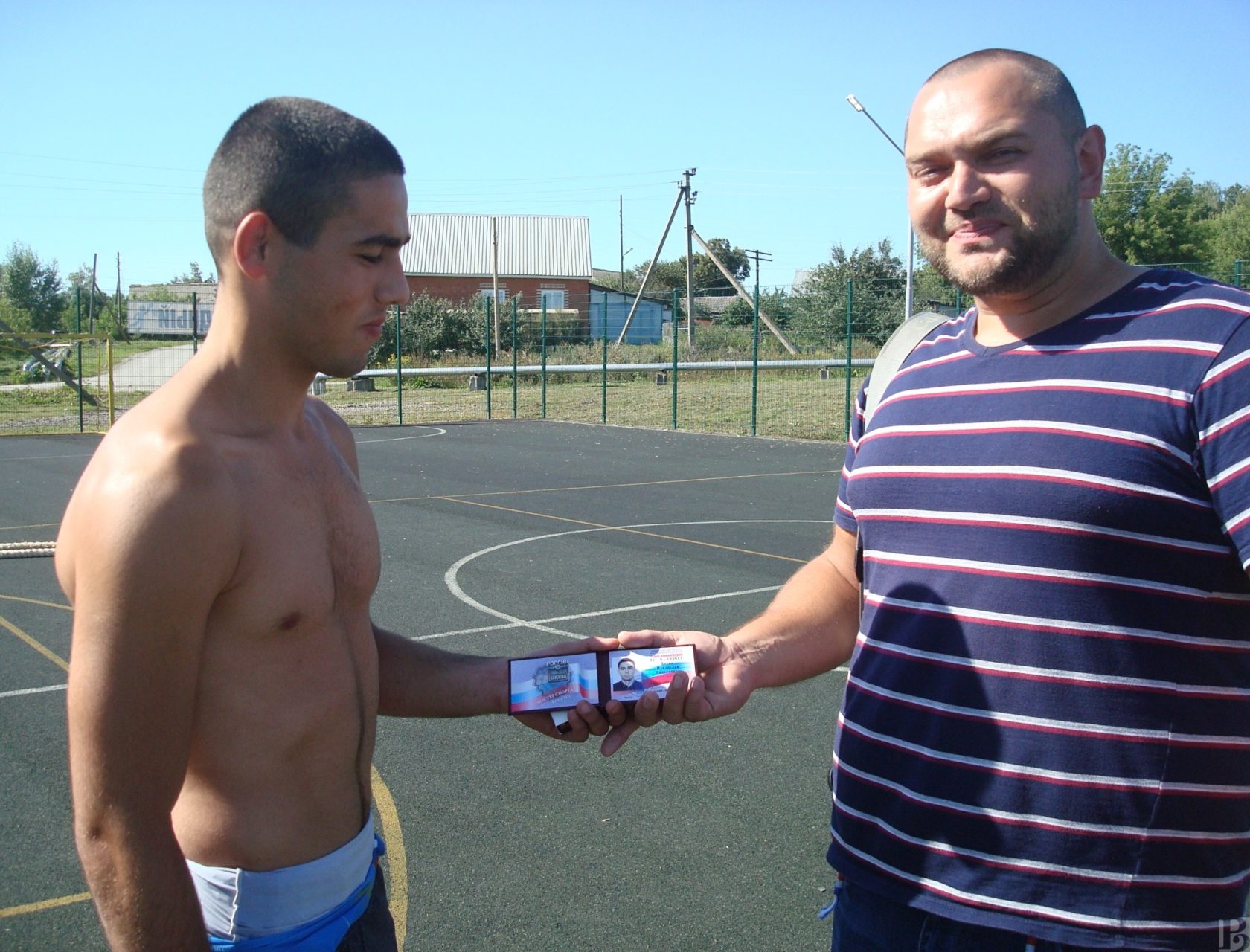 В Михайловском районе на спортивной площадке ФСК «Метеор» состоялись соревнования, посвященные Дню физкультурника. Главный судья Михаил Копытов объявил программу, в нее входили мастер-классы по баскетболу, фитнесу и мини-футболу. Но вначале в торжественной обстановке борцу Владиславу Бегяну было вручено удостоверение «Мастер спорта России».