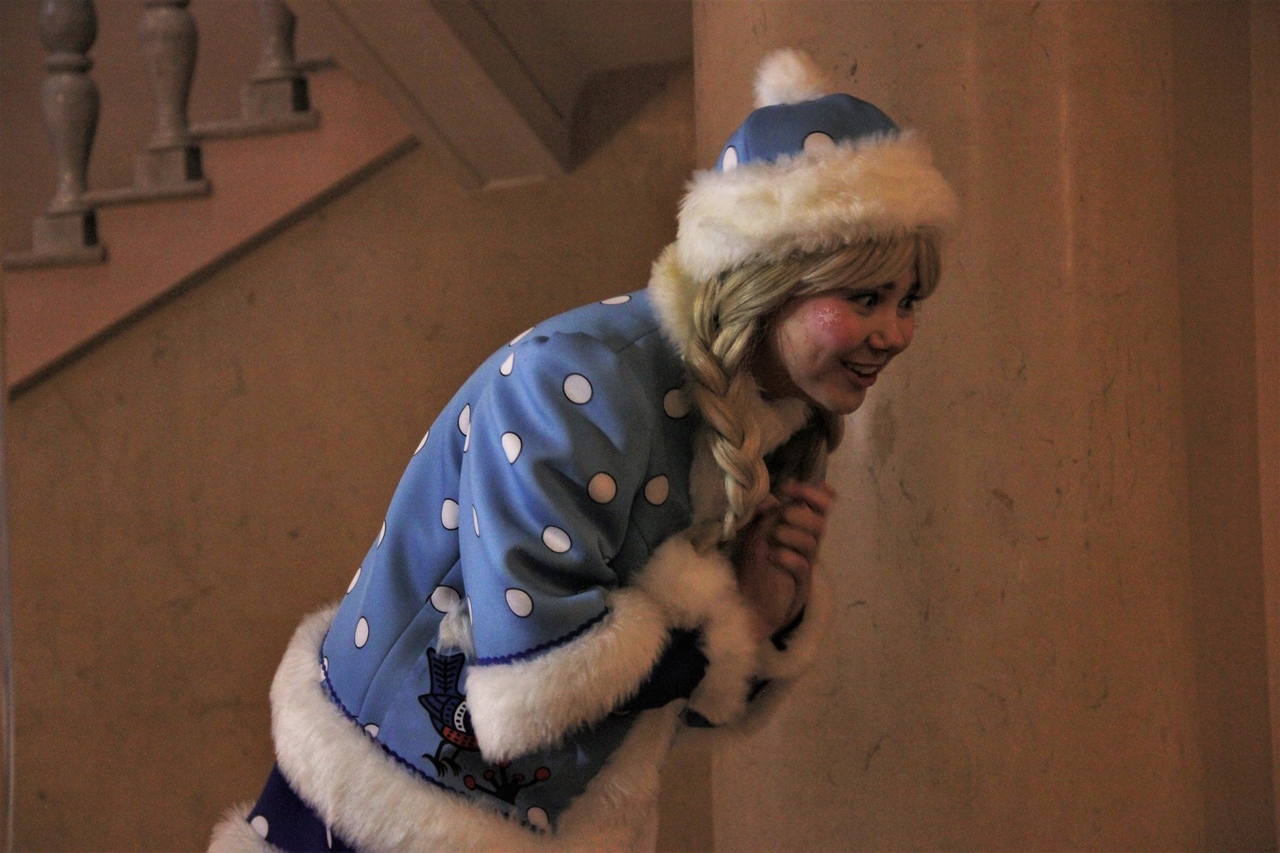 Проводником для малышей и их мам выступила артистка Анастасия Дягилева в образе Снегурочки. Она поиграла с ребятами в загадки, показала им фойе, костюмерный и бутафорский цеха, гримуборные. Дети увидели эскизы костюмов новогодней сказки и работу швей, пообщались с гримерами и узнали, как преображаются герои. А в бутафорском цехе гостям продемонстрировали макеты спектаклей из репертуара и дали раскрасить многогранную пирамиду, напоминающую новогоднюю елку.