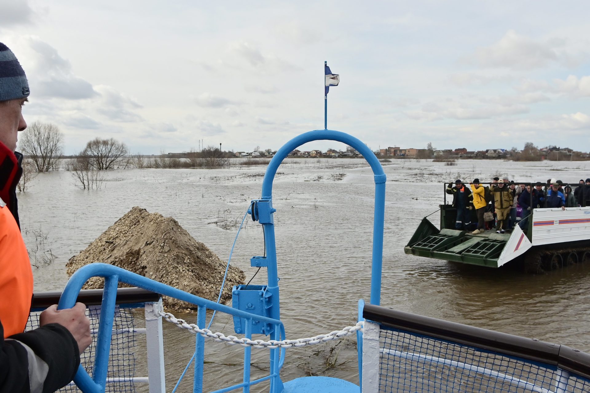Ведомство напоминает, что в период половодья жителей населенного пункта Заокское довозят на ПТС-М до катера, который осуществляет перевозку в город Рязань и обратно согласно расписанию.