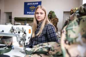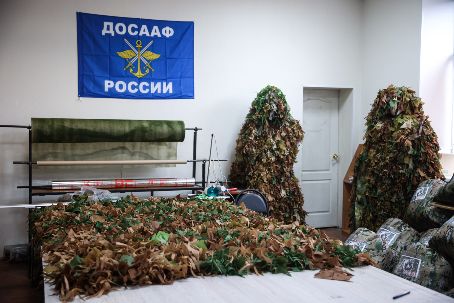 Встреча прошла в Рязанском ДОСААФ. Там располагается мастерская, в которой волонтеры по запатентованной технологии производят антидроновые одеяла и маскировочные сетки.