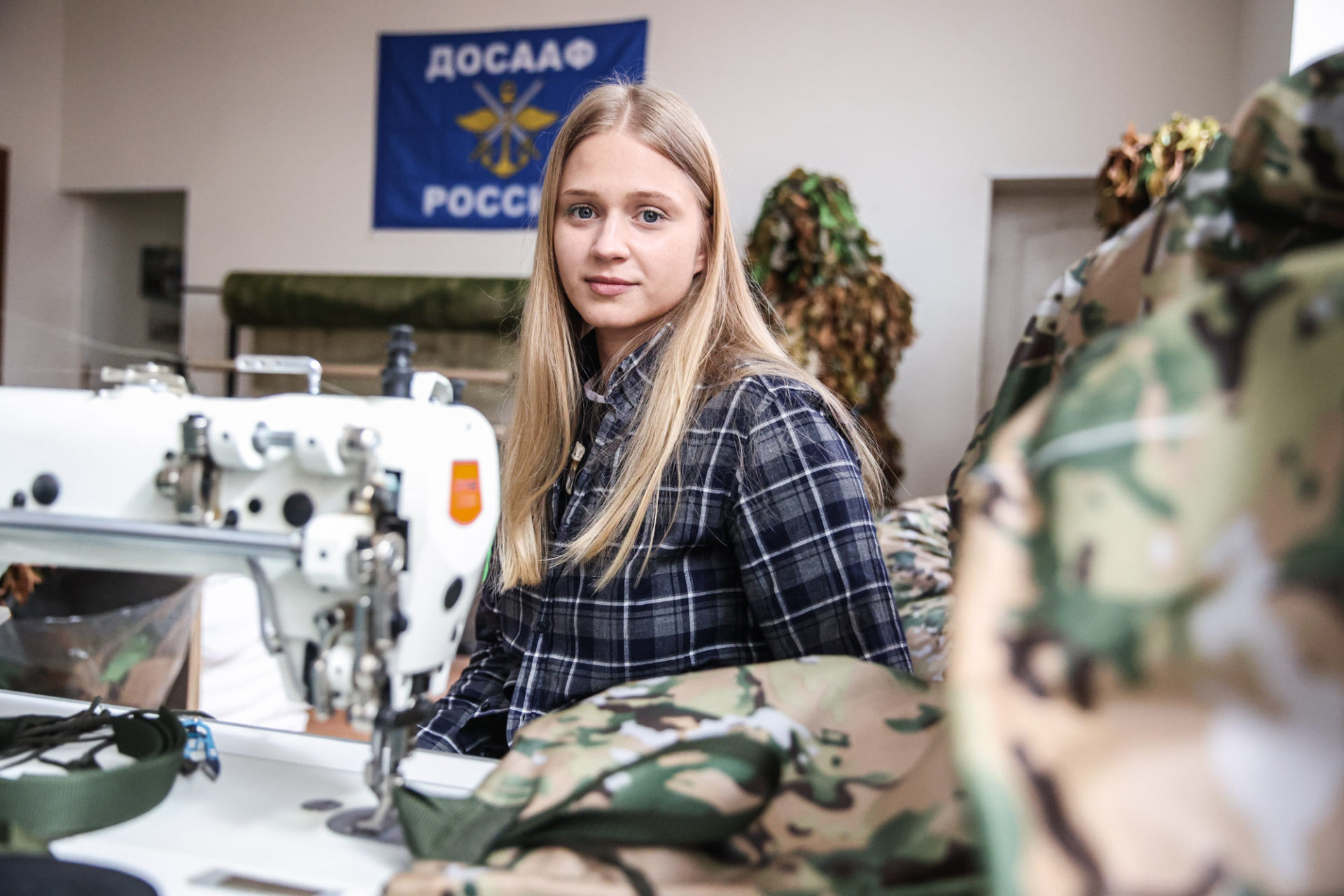 Ежедневно в мастерской трудятся более ста волонтеров. Это родные участников СВО, члены Комитета семей воинов Отечества, студенты, пенсионеры. Часть из них шьет одеяла и маскировочные сетки на дому.