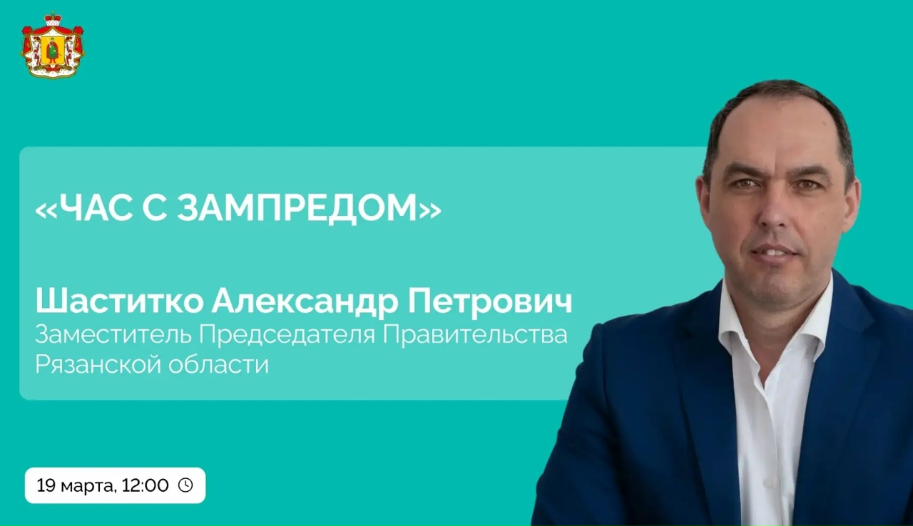 Продолжается цикл мероприятий «Час с зампредом», организованных по поручению губернатора Рязанской области Павла Малкова. 19 марта состоится диалог с заместителем председателя правительства региона Александром Шаститко. Он расскажет о результатах и планах в региональном агропромышленном комплексе, сфере природопользования и ветеринарии.