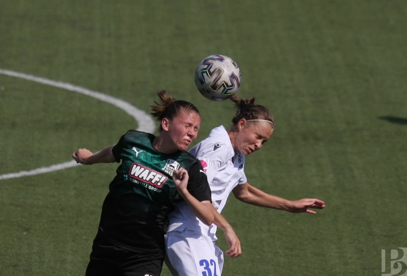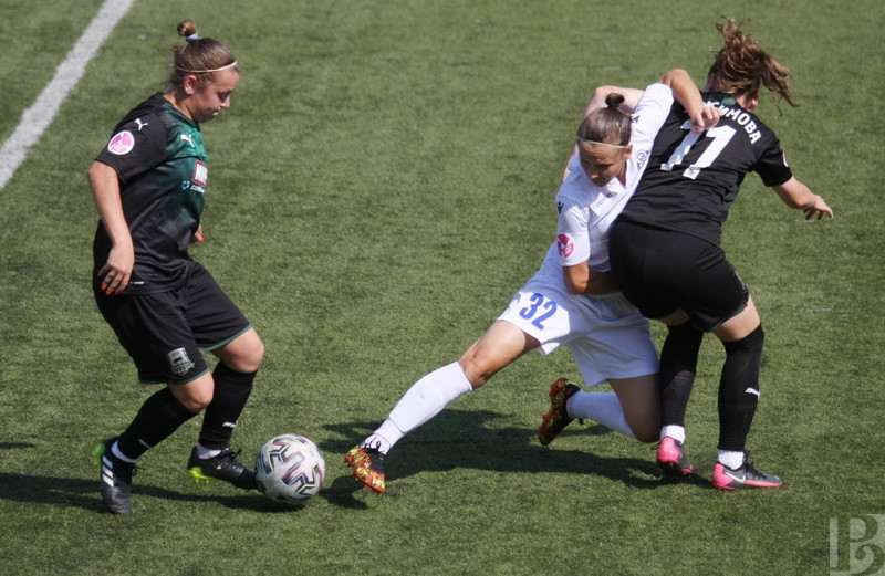 Первый тайм игры прошёл с преимуществом хозяев поля. Счёт на 18-й минуте игры открыла Дарья Еременкова после подачи углового с правого фланга. На 30-й минуте после подачи углового с противоположной стороны Елена Зубкова протолкнула мяч в ворота. Гол в «раздевалку» с пенальти забила Наталья Перепечина.